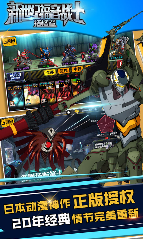 新世纪福音战士适格者满V版下载是一款根据经典同名动漫改编的机甲类RPG手游,还原经典的原作剧情,玩家将扮演一名新人指挥官,去完成各种各样的任务,感受更多精彩!喜欢的朋友们快来下载吧。