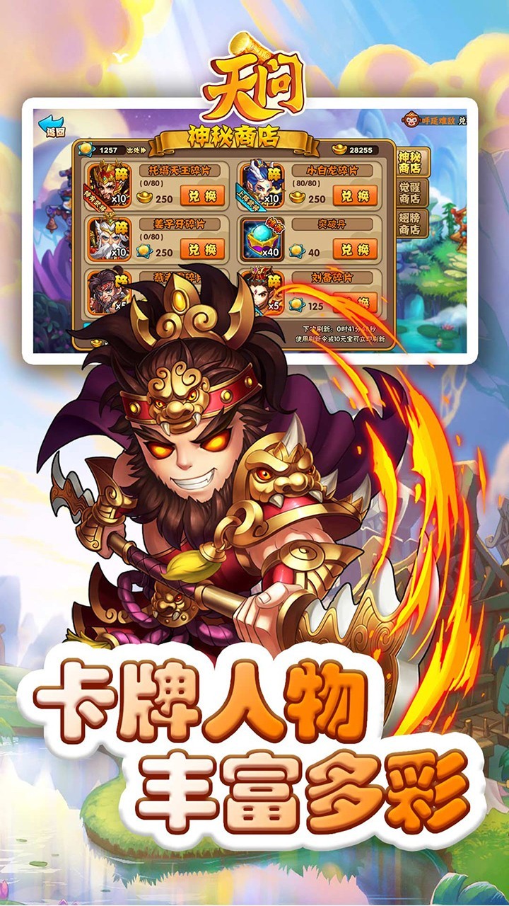 天问OL是一款西游题材的卡牌对战角色扮演游戏,玩家们可以收集丰富的西游角色们进行帮助战斗。策略的利用他们搭配使用酷炫的合击技能享受畅爽的卡牌战斗,喜欢的小伙伴欢迎下载。