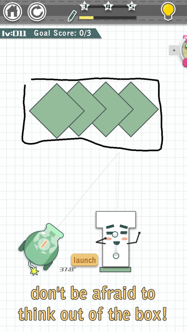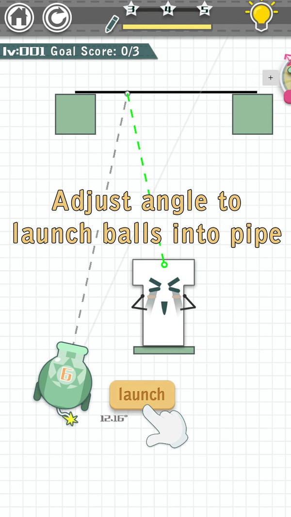 管子是空的,所以很伤心。你的工作是画一条线,找到最佳的角度和位置,把球发射到管道后的物理反射。清理舞台的关键是让烟斗里装满球,然后再次微笑! 这看起来难吗? 是时候在这个游戏中展示你的智商了!试着找到完成每一关的最好方法。 完成关卡并不是只有一个解决方案。你可以想出你自己的解决方案,当你画线的时候,不要害怕打破常规!当你发射球时,仔细瞄准,不同角度的变化。 有些能级看起来很简单,但我们来看看能不能得到3颗星。