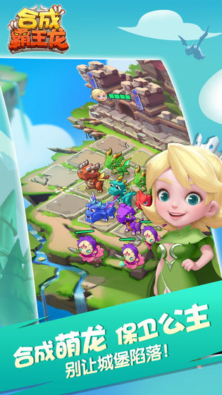 《合成霸王龙》是一款Q版画风的休闲合成闯关游戏。玩家在游戏里将成为公主殿下的见习驯龙师。通过不断合并相同的龙,你将唤醒一群个性又可爱的高级萌龙,并带领他们抵御一波波怪物的进攻,保卫龙族公主和城堡的安全。