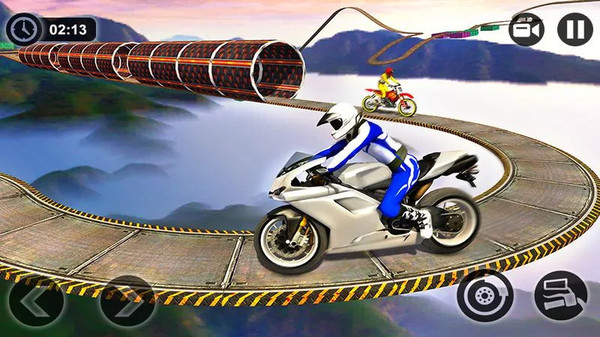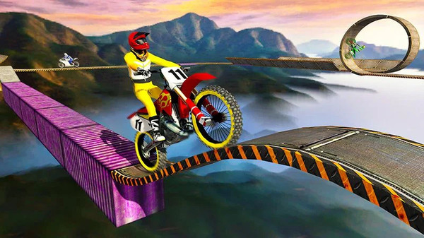 有各种各样的赛车摩托车和巨型坡道特技表演, 这将使你继续玩摩托车骑游戏。