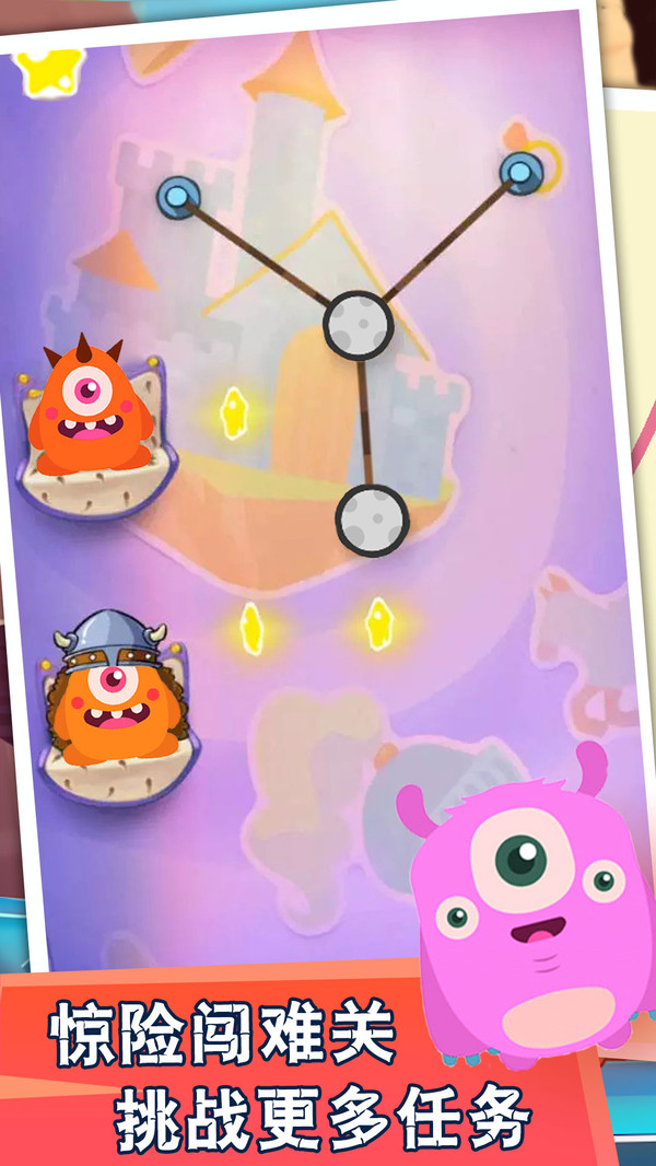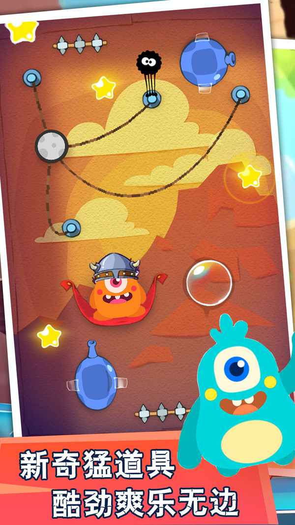 一款十分经典的休闲益智游戏,游戏画面风格卡通精美,根据物理学原理设计的关卡创意十足,考验玩家的手指的灵敏度以及反应速度。超人气休闲益智手游,大人儿童全爱上。