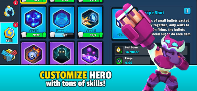 英雄出击是一款以射击为题材的多人在线竞技对战游戏,手绘卡通的欧美画风场景,精美细腻的人物和皮肤非常的赏心悦目,游戏中玩家可以自由选择英雄,多种竞技模式进行射击对战,非常热血刺激。