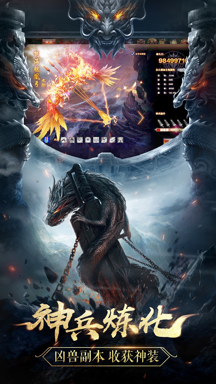 2、强大的异兽副本挑战,获取神兵利器进行炼化提升;