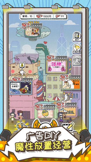 大小:0MB 下载:621次 这就是广告 益智休闲 支 持:安卓 分 类:手机游戏 大 小:0MB 版 本: 下载量:621次 发 布:2022-10-14 17:27:14 特 色:这就是广告下载(暂未上线)_这就是广告游戏安卓版下载 #这就是广告截图 #这就是广告简介 这就是广告是一款搞笑魔性的放置休闲游戏,玩家们需要经营属于自己的广告,通过点亮各种商场设施,放置属于自己的广告让商场设施发放光彩,享受爆笑的游戏过程。游戏特色1、魔性搞笑的趣味人物图形带给你欢声笑语;2、趣味的开会小游戏,不断的点击文字组成话语;3、通过放置各种魔性的广告点亮商场,赚取更多金钱;4、各种爆笑的游戏环节故事带给玩家们足够的欢笑。游戏介绍什么?世间还有比肥宅快乐水和沙雕视频更快乐的……?!答案就是……人类四大本质集体代言的 “渣渣广告播放器”——《这就是广告》魔性广告DIY放置模拟经营游戏