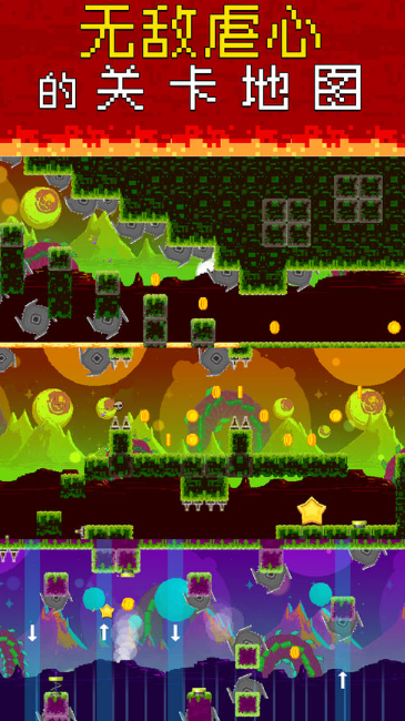 节奏冲刺是一款非常刺激的像素跑酷闯关类游戏,在不同的场景中玩家需要根据音乐节奏不断跳跃和奔跑,躲避各种尖刺和障碍物,收集路上的金币和道具,还能解锁全新像素角色。