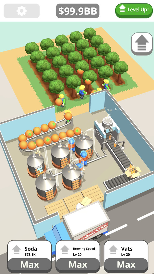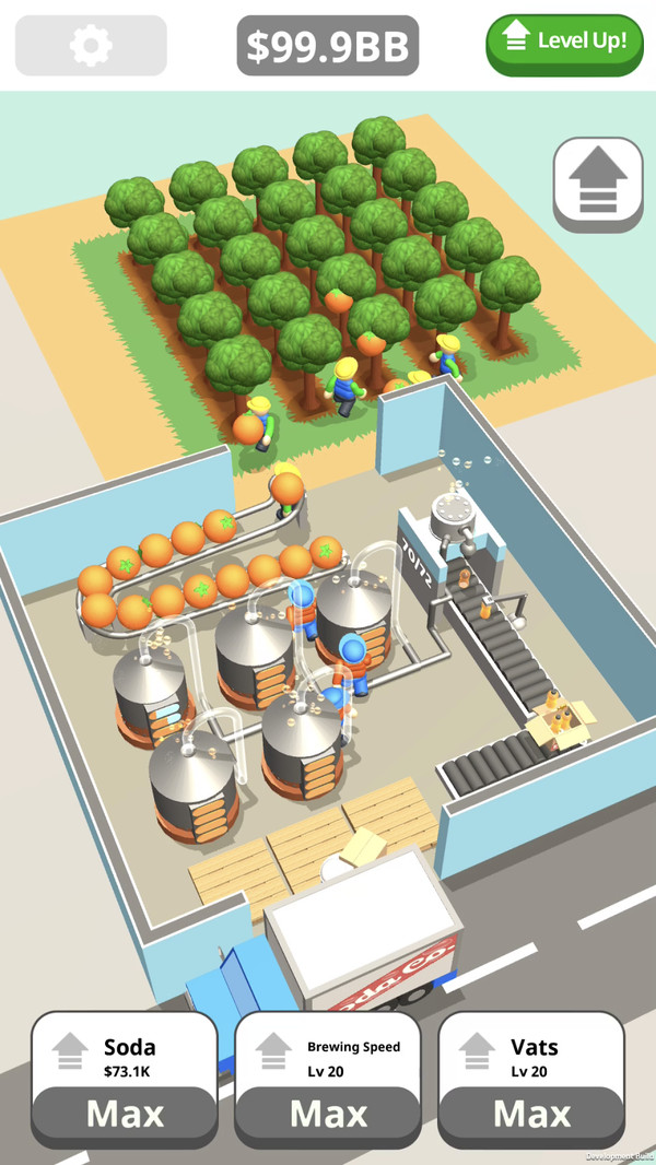 安卓下载 大小:35.6MB 下载:131次 汽水工厂 益智休闲 支 持:安卓 分 类:手机游戏 大 小:35.6MB 版 本:0.1.0 下载量:131次 发 布:2022-10-17 17:32:52 特 色:汽水工厂游戏下载_汽水工厂安卓最新版下载 安卓下载 #汽水工厂截图 #汽水工厂简介 汽水工厂是一款益智休闲的经营游戏,玩家们将在这个工厂中进行种植自己的果园,生产更多的橘子帮助自己制作各种橘子饮料,赚取金钱来扩大工厂,成为一个饮料大亨。游戏特色1、简约精致的游戏卡通游戏图形,上帝视角的方式给你良好的游戏体验;2、种植更多的橘子,帮助扩大自己的果园以此来帮助生产更多的果汁饮料;3、轻松欢乐的游戏过程,享受制作果汁获取金钱的快感,成为亿万富翁;游戏介绍给你的工厂加点汽水!在你的果园里种桔子,尽快收割,让它们在大银缸里发酵,通过管道,进入瓶子里,把它们装箱,放到货车上。赚尽可能多的钱来扩大你的工厂,成为一个苏打饮料亿万富翁!