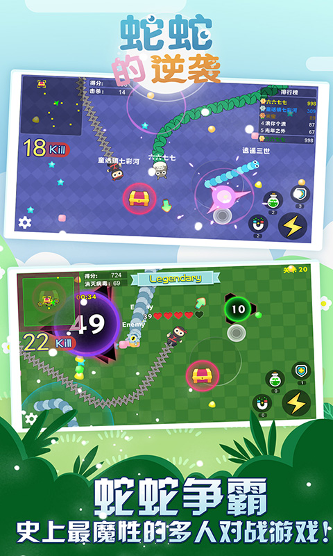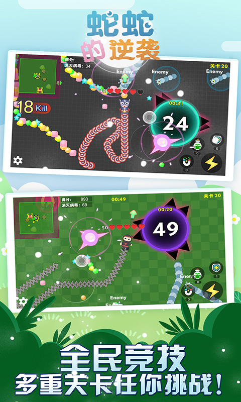 安卓下载 大小:39.02MB 下载:289次 蛇蛇的逆袭 益智休闲 支 持:安卓 分 类:手机游戏 大 小:39.02MB 版 本:1.0 下载量:289次 发 布:2022-10-17 18:23:14 特 色:蛇蛇的逆袭下载_蛇蛇的逆袭游戏安卓版下载 安卓下载 #蛇蛇的逆袭截图 #蛇蛇的逆袭简介 蛇蛇的逆袭是一款动画卡通风格的多人在线竞技休闲类游戏,游戏融合了贪吃蛇和IO的玩法元素,玩家控制你的贪吃蛇在竞技场中不断的吞噬成长,在规定的时间内成长为最大的贪吃蛇。游戏特色1、动画卡通风格的画风经典竞技模式;2、控制蛇蛇灵活的运动收集能量吞噬小蛇;3、全民竞技和时间玩家展开同屏对战PK;4、完成竞技挑战任务可以解锁多彩皮肤;编辑点评一款比较有意思的休闲类的小游戏,在蛇蛇的逆袭中你可以体验到很多有趣的贪吃蛇游戏玩法哦,而且蛇蛇的逆袭在游戏互动,以及创意游戏体验上来说都是很不错的,喜欢的小伙伴赶快来玩吧。