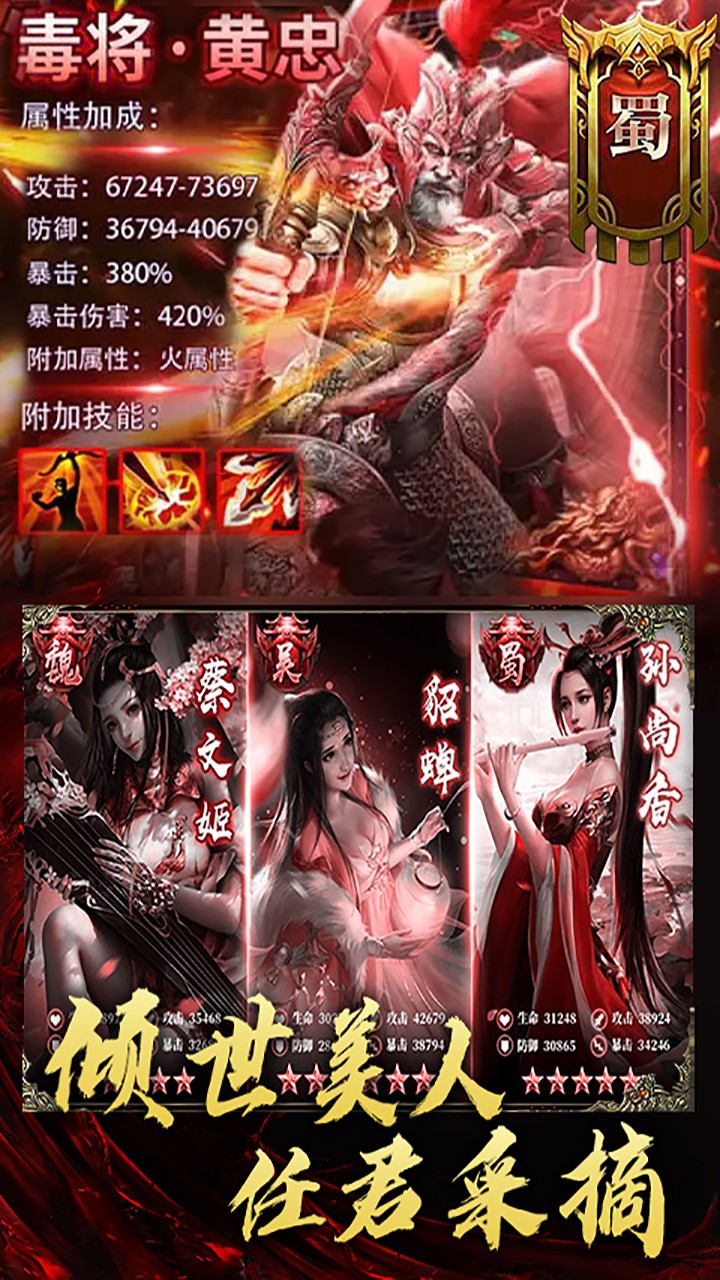 3、各种极品武将以及倾城绝世的美人们等你尽情的享受;