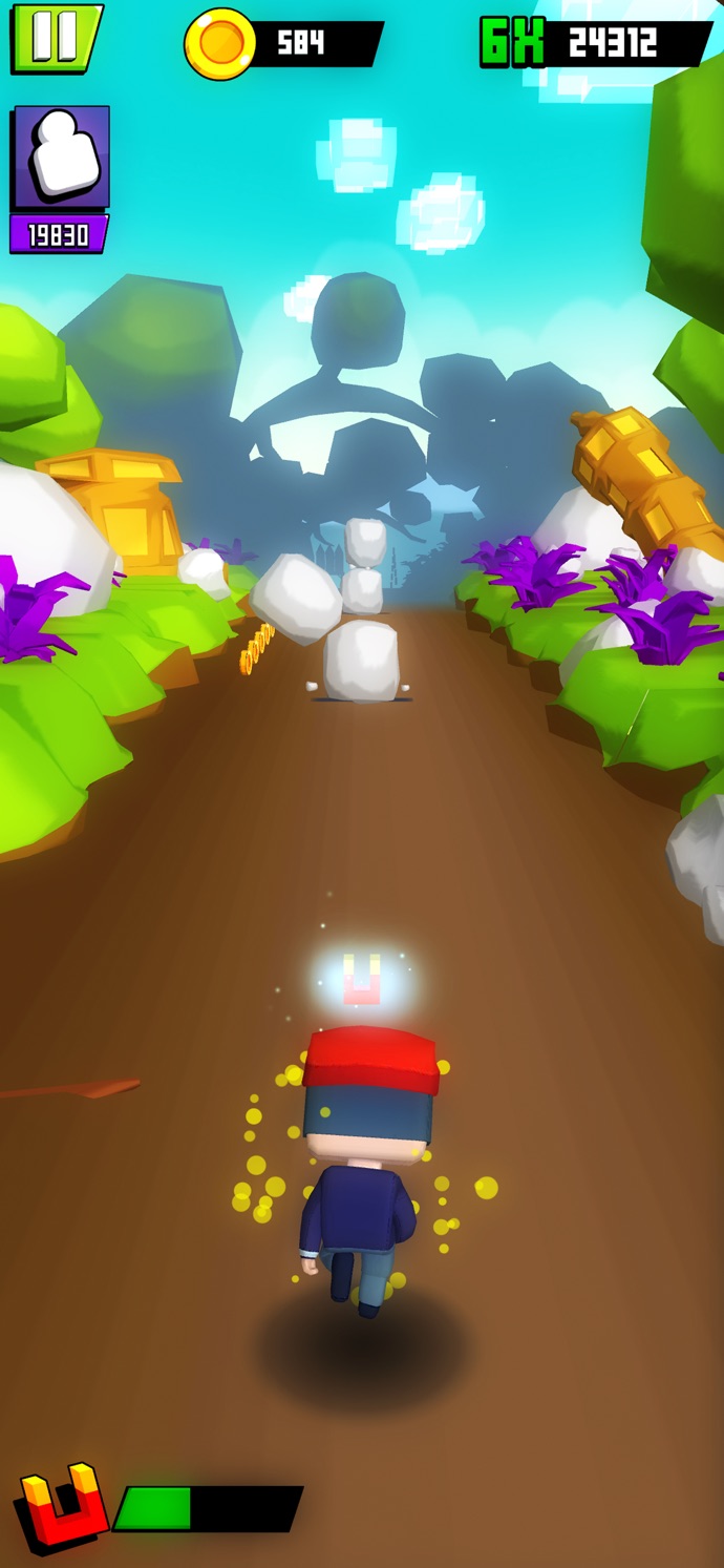 2、控制角色不断的奔跑收集沿途的金币;