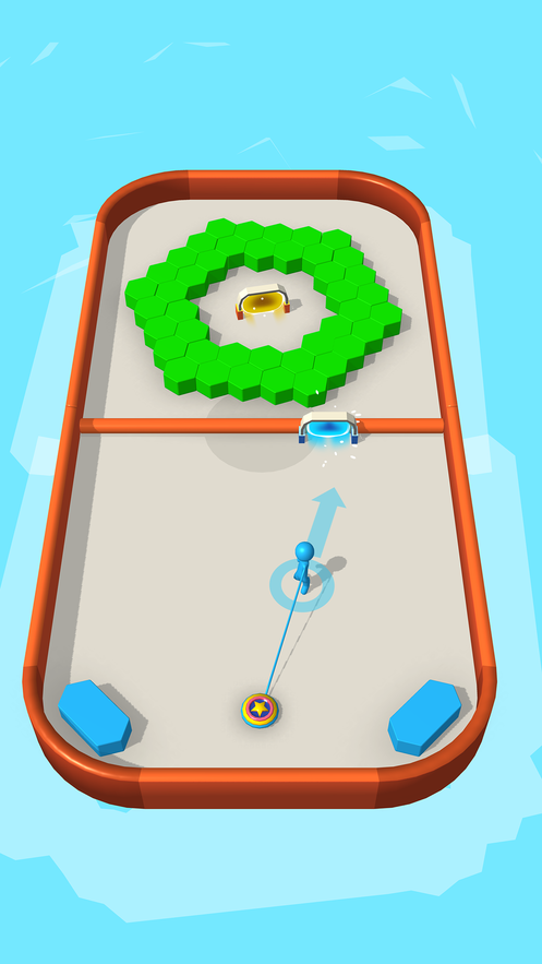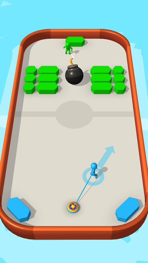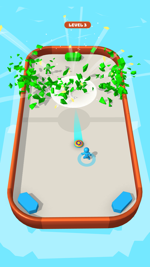 飞盘栈道是一款物理弹射类竞技休闲游戏,游戏的玩法有点类似与兵乓球,可以在线匹配也可以自由邀请好友在线PK,利用物理的弹射特性扔出飞盘,击碎对手后面的方块,全部击碎即可获胜。
