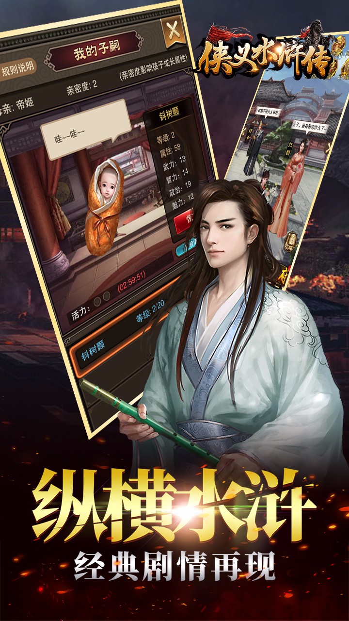 1、除经典水浒剧情外还加入了原创剧情故事,让你感受别具特色的游戏色彩;