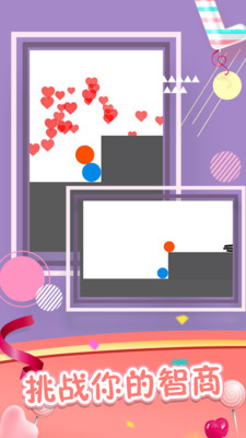 一款十分好玩的休闲益智小游戏,十分酷炫的休闲益智玩法,恋人之间的最佳休闲小游戏,通过独特的物理机制使得两个小球相连。划线规避障碍、创造条件,让相爱的球球相遇!