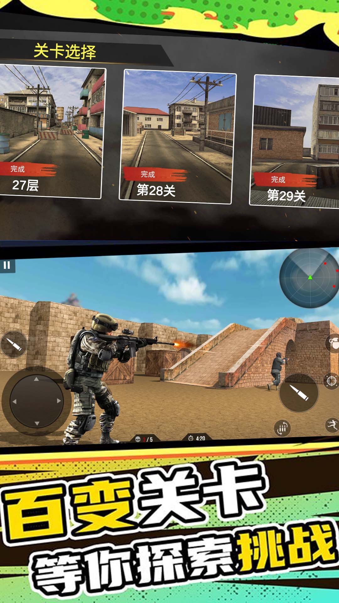 1、在巨大的战场上击败敌人,去熟练使用所有武器,快速完成所有射击任务,会随时可能遇到敌人;