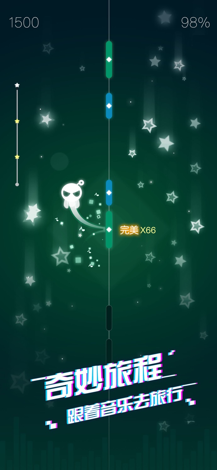 1、游戏采用梦幻的场景,大家可以跟随音乐去旅行;