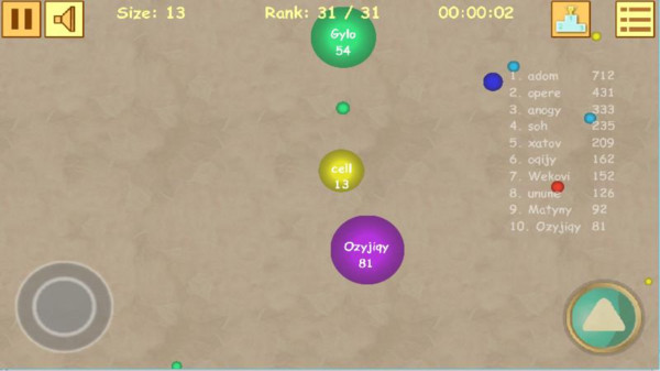 安卓下载 大小:8.59MB 下载:870次 细胞io 益智休闲 支 持:安卓 分 类:手机游戏 大 小:8.59MB 版 本:1.1 下载量:870次 发 布:2022-11-01 12:08:37 特 色:细胞io游戏下载_细胞io安卓最新版下载 安卓下载 #细胞io截图 #细胞io简介 细胞io是一款类似球球大作战的简约益智休闲类游戏,游戏的玩法和球球大作战类似,通过吞噬吃掉其他细胞来帮助自己逐渐的成长,成为地图上最大的细胞,畅爽的进行吞噬。游戏特色1、超简约的游戏画面,画质虽简单却能给你畅爽的游戏体验;2、操作方式简单便捷,可以良好的进行控制操作,非常游戏上手;3、简约的操作以及图形页面,玩家们可以舒适良好的进行体验;4、游戏排行榜极致,玩家们可以通过观看来知道自己的大小方便吞噬其他玩家。游戏介绍移动并捕捉细胞使自己变大。 触摸按钮即可抛出细胞。 较大的细胞移动较慢。 你可以离线玩这个游戏,感受欢乐。