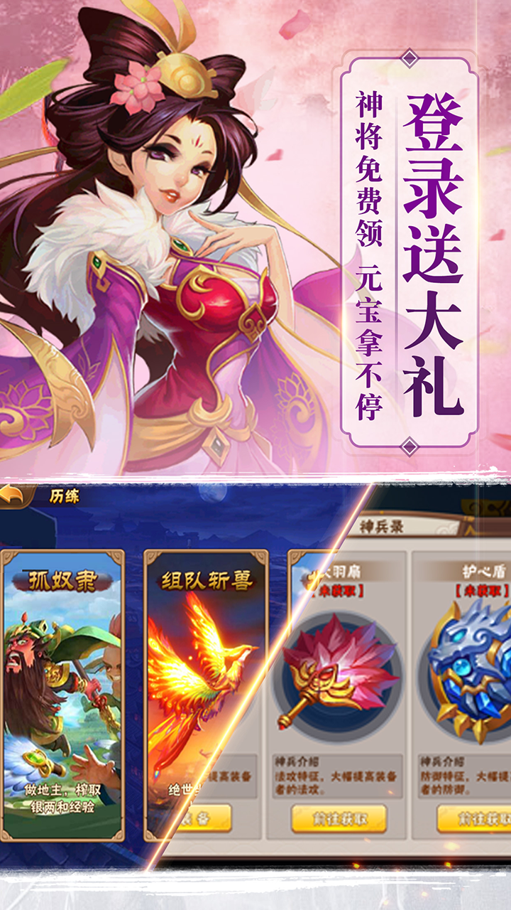 3、超多丰富的游戏福利领不完,上线就送高级VIP和超强神将!