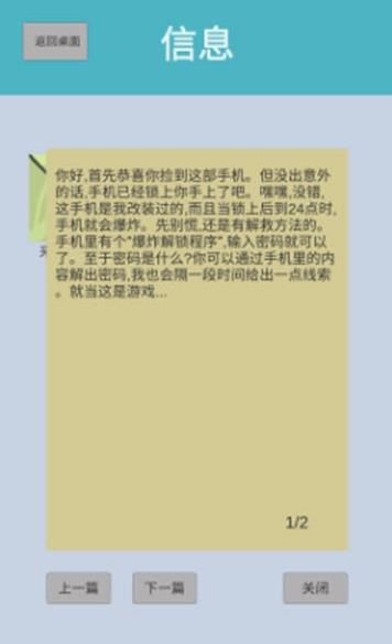 安卓下载 大小:28.6MB 下载:833次 手机十二小时 益智休闲 支 持:安卓 分 类:手机游戏 大 小:28.6MB 版 本:1.0 下载量:833次 发 布:2022-11-05 12:12:18 特 色:手机十二小时游戏下载_手机十二小时游戏安卓版下载 安卓下载 #手机十二小时截图 #手机十二小时简介 手机十二小时是一款好玩的休闲类游戏,在游戏中玩家们需要根据手机的提示完成趣味的玩法挑战,众多的谜题等待你的探索,然你轻松地放松你的心情,喜欢的玩家可以下载!游戏特色1、游戏采用简约的画面风格,模拟手机实现聊天;2、简单的面对未知的考验,顺利的解开所有的谜题;3、趣味的解谜玩法模式,需要找回丢失的密码;4、全新的玩法模式独特体验,享受更加轻松的心情。游戏简介大多数人都对手机有着依赖性,这款游戏能充分的治疗大多数玩家,让你对手机产生一定的抵触。采用了比较经典的找回手机密码模式,让谜底变得更难,更需要你动用自己的智慧去解谜。
