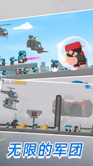 -各种各样的兵种你可以去自由的选择和尝试的,带着自己的无限兵团来战斗轻松的去击败对手;