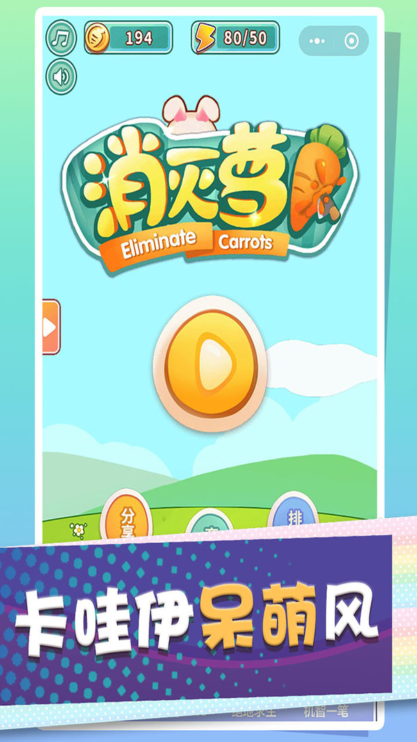 安卓下载 大小:11.37MB 下载:681次 消灭萝卜 益智休闲 支 持:安卓 分 类:手机游戏 大 小:11.37MB 版 本:1.0 下载量:681次 发 布:2022-11-05 12:21:28 特 色:消灭萝卜游戏下载_消灭萝卜安卓最新版下载 安卓下载 #消灭萝卜截图 #消灭萝卜简介 消灭萝卜是一款非常呆萌可爱的益智休闲类游戏,游戏采用关卡的形式让玩家们进行闯关,玩家们将利用可爱的兔子去消灭关卡中的各种胡萝卜,不断地挑战自己,感受畅爽的过程。游戏特色1、呆萌可爱的卡通游戏风格画面,给你最舒适的游戏体验;2、轻松欢乐的游戏玩法,便捷的操作,享受游戏的独特魅力;3、魔性十足的益智关卡,在游戏的同时还能锻炼自己的大脑;4、丰富的关卡,各种不同的有趣小玩法,给你畅爽的体验。游戏介绍游戏界面遍布胡萝卜,玩家扮演兔子收集萝卜,兔子会随玩家手指滑动的方向移动,每次操作兔子都会运动到泥土的边缘。玩家需要将所有的萝卜全部收集才能进行下一关。