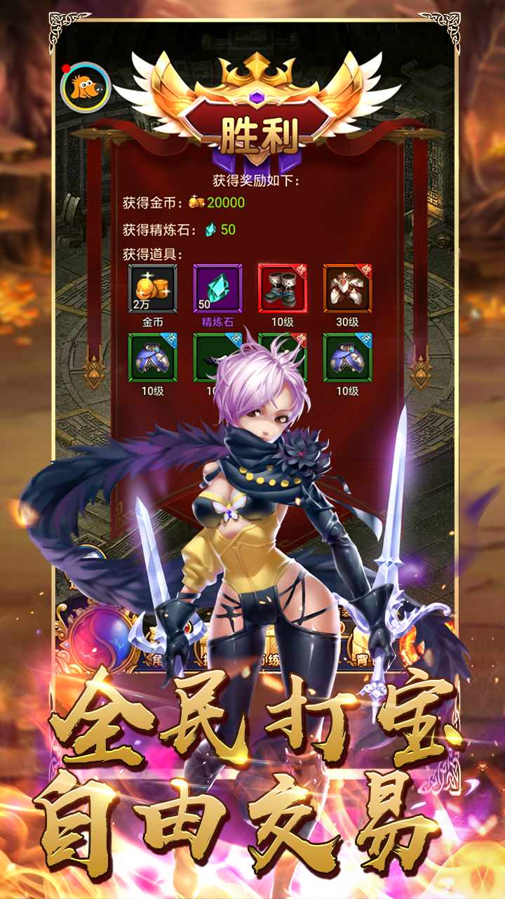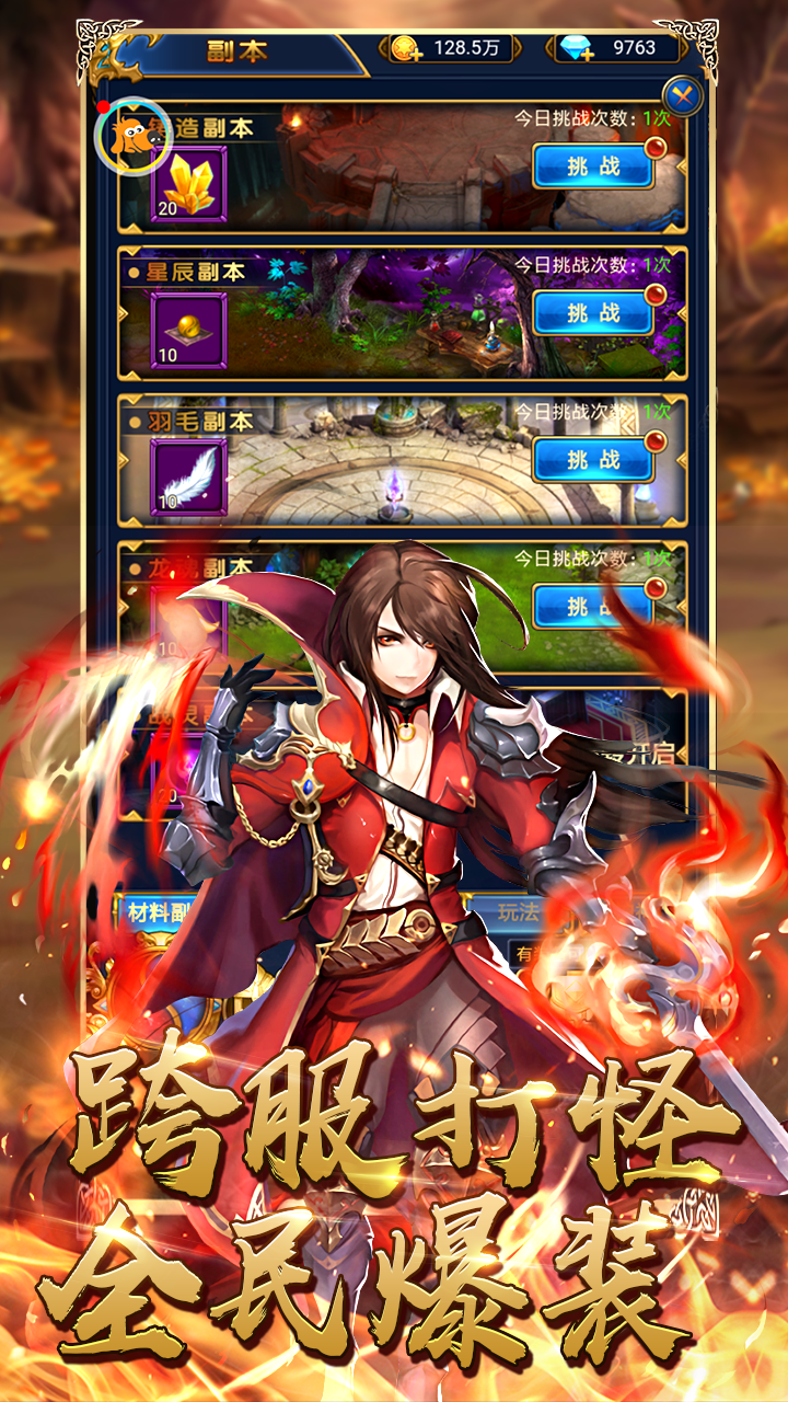 1、跨服打怪的方式给你畅爽,爆取各种极品神装,神装再身,天下无敌;
