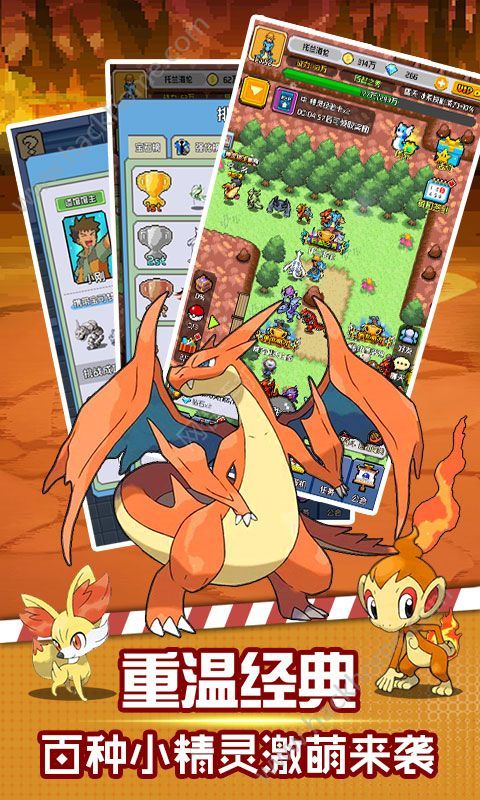 竞技、地底、核心副本玩法层层深入,任务、活动、PK、BOSS,好友、和公会等交互性玩法引人入胜。在游戏中,精灵进化、精灵技能、努力值、属性克制等多维属性让你的精灵脱颖而出,皮卡丘、超梦、喷火龙等经典再现,数百款精灵完美还原。