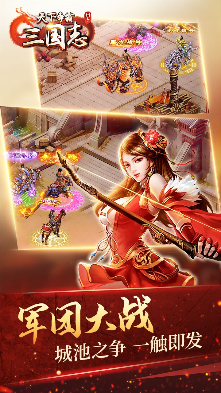 《天下争霸三国志》是一款新颖的三国题材手机游戏,战斗方式采用了全新的RPG带兵混战,让您可以从全新视角领略战场中瞬息万变的精彩战局!您在游戏中除了可将吕布、张飞等各路三国历史名将组建成为您的铁甲雄狮,还有神兵利器助您驰骋疆场!不止如此,除了各种名马,更有麒麟、神象等上古神兽作为您的坐骑选择! 此刻,三国乱世画卷即将展开,您准备好了吗?