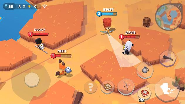 一款3D卡通Q版对战类游戏,选择自己的动物角色,与游戏中其他的伙伴们在线展开一场对战。这款游戏的玩法是传统大逃杀游戏的翻版,玩家们将要在巨大的地图当中来与其他的对手们互相战斗,并且逐个击败,让你自己能够在最后成为真正的胜利者,赢得游戏中的冠军。