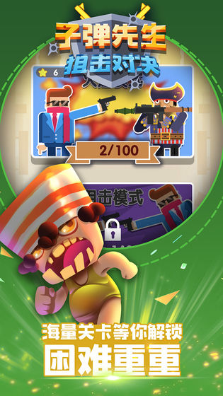 子弹先生狙击对决是一款简单有趣的动作闯关益智休闲类游戏,玩家们需要利用自己的大脑,利用最少的子弹来帮助消灭更多的敌人,顺利的闯关游戏关卡,感受其中各种精彩玩法的欢乐。