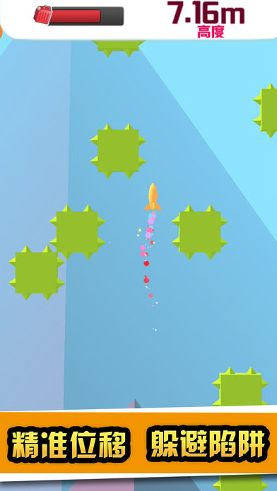 3、在真正的测试结束后,你需要保持触摸屏幕,通过精确控制来控制小火箭避开障碍物和陷阱;