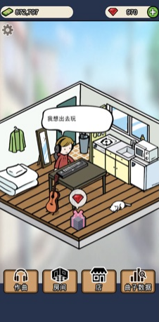 4、丰富的家具可以进行选择购买,点缀自己的小屋,创作更多出色的曲子。