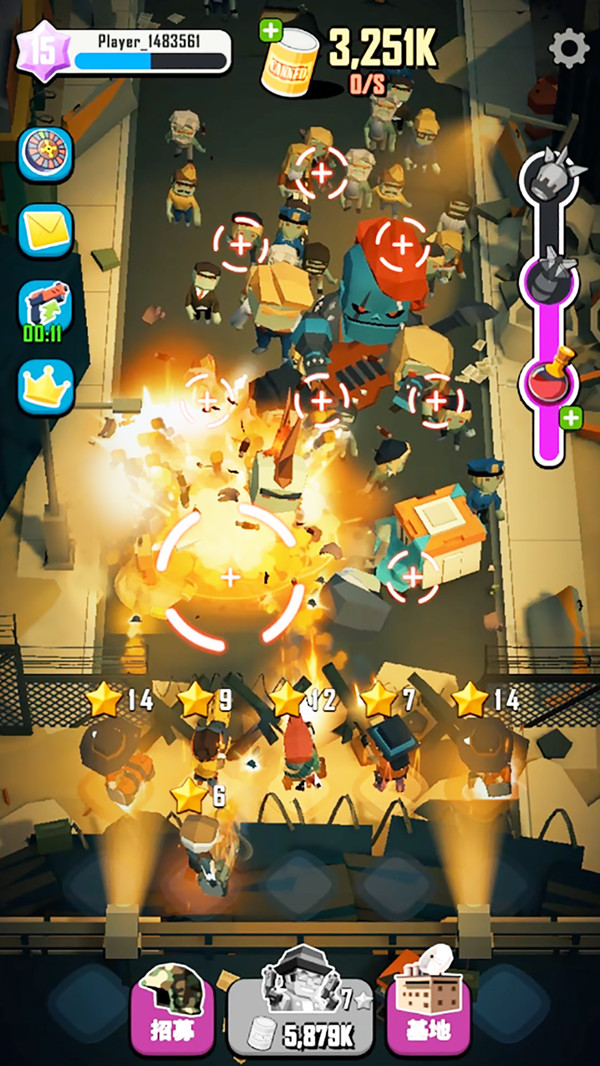 麦比大作战是一款以丧尸为题材的放置类游戏,来和我们一起拯救更多倖存者一起建立新的文明吧! 击杀丧尸获得狂暴血清,提升士兵属性!