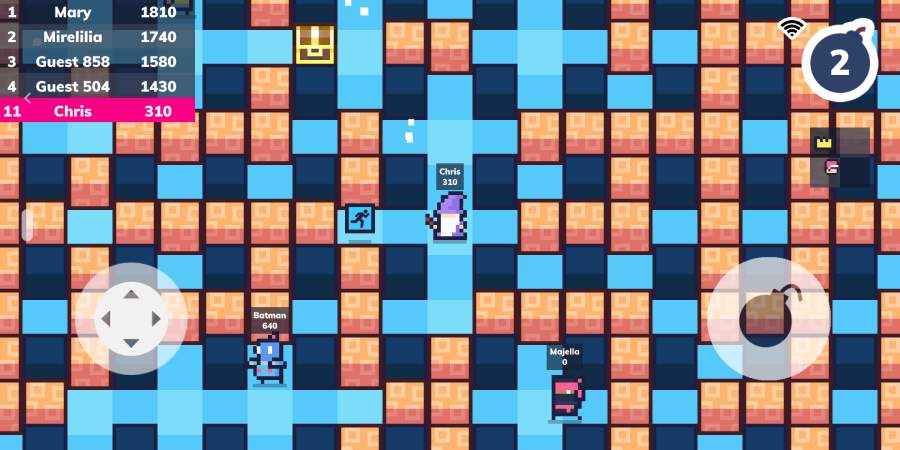 一款像素街机风格游戏。注意躲开所有的危险和陷阱,捡起有用的道具,躲开危险的陷阱,解锁所有角色并完成收藏。注意躲开所有的危险和陷阱,然后去炸你的朋友们