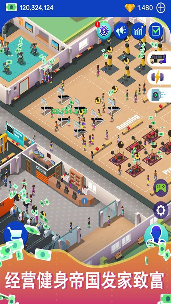一款体育竞技游戏,游戏的玩法还是十分小清新的,玩家经营一个属于自己的健身馆,招聘专业的健身教练,赚取更多的钱,你的梦想就是将健身推广到全民健身,赚钱的同时提高大家的身体素质,对这款游戏感兴趣的玩家,一起来下载体验吧!