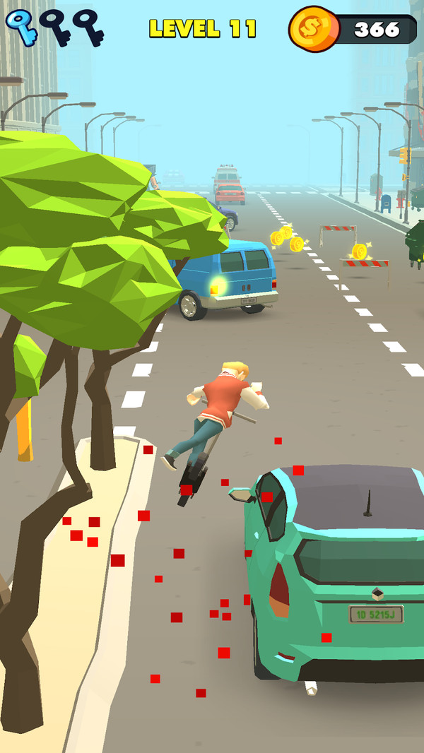 太有趣了–骑着快速滑板车穿越城市的街道!但是以当前的流量来说,这可能是非常危险的。 在这个有趣的游戏中,您必须在充满危险障碍的市区内进行机动。避免城市交通,不稳定的广告牌以及任何其他可能导致碰撞的东西!沿着道路或人行道行驶,奔波或屈服-尽一切努力保持生命,并使您的车手到达终点!