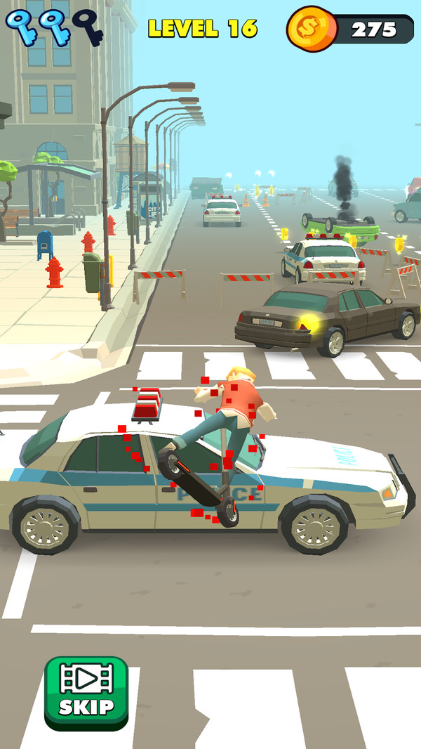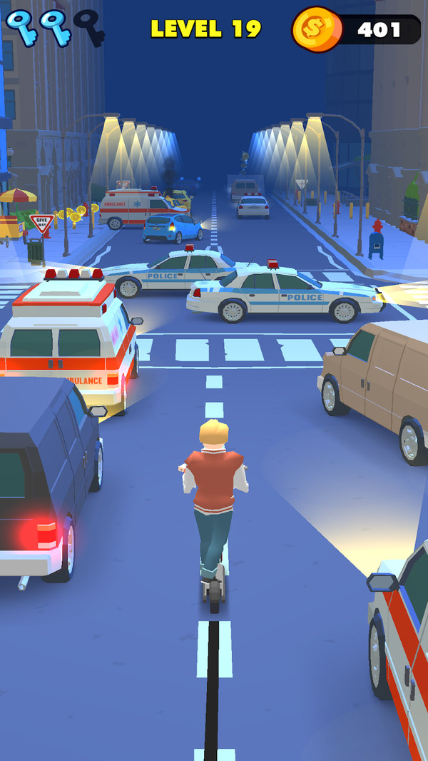 城市滑板车是一款简单有趣的闯关休闲类游戏,骑着快速滑板车穿越城市的街道,通过快速的躲避各种未知的危险,帮助自己顺利的通过,享受简单有趣的闯关游戏。