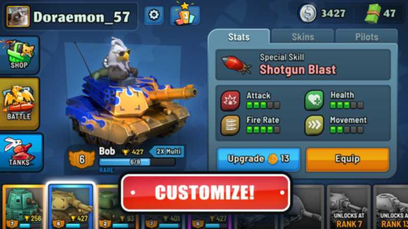 一款刺激好玩有趣的冒险射击游戏,游戏的画面清晰自然,简单明了,在游戏中,玩家演变我一只驾驶着坦克的可爱宠物,需要与其他的玩家在场景中相互射击竞技,玩家可以充分的利用坦克的功能和战斗力量,准确的打击敌人,将敌人全部消灭,解锁更高级的射击设备,喜欢的玩家赶紧下载试试吧。