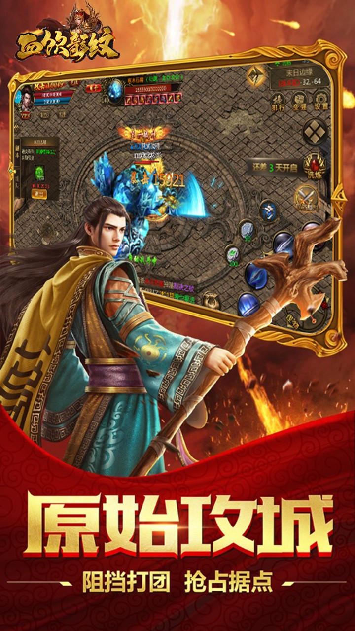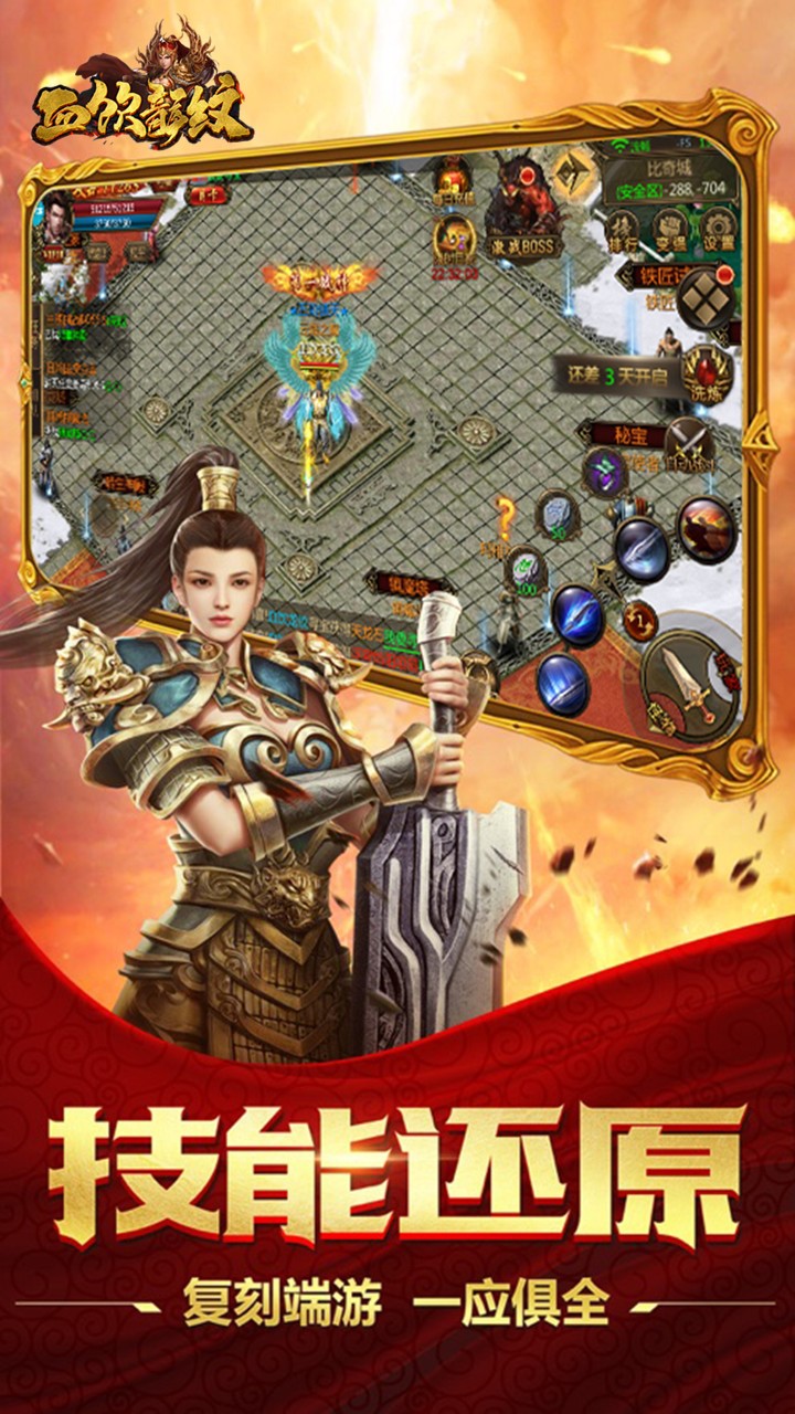 b、经典的传奇风格游戏画面,还原了各种经典的传奇玩法内容要素,享受最真实的传奇游戏;