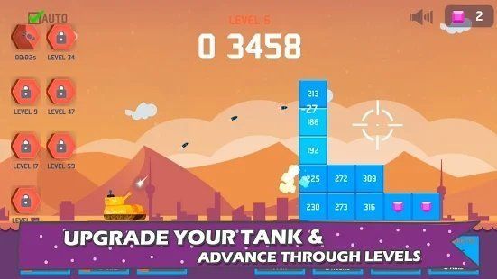 一款趣味闯关类型的游戏。玩家需要在游戏中控制一个坦克进行射击闯关,游戏内有着许多型号的坦克,玩家需要通过闯关来解锁。解锁条件越苛刻的坦克越强。