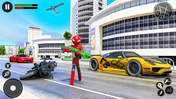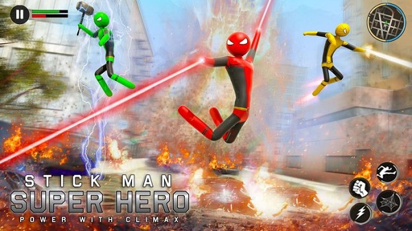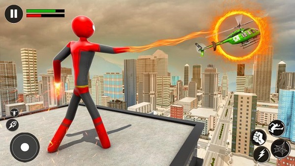 飞行超级英雄是一款很精彩刺激的冒险游戏,你要扮演到一个火柴人去进行刺激的冒险,游戏中的你的形象是蜘蛛侠的形象,所以你也是可以使用蜘蛛侠的各种技能的,利用蛛丝在城市中自由的去穿梭,好好的去享受到乐趣。