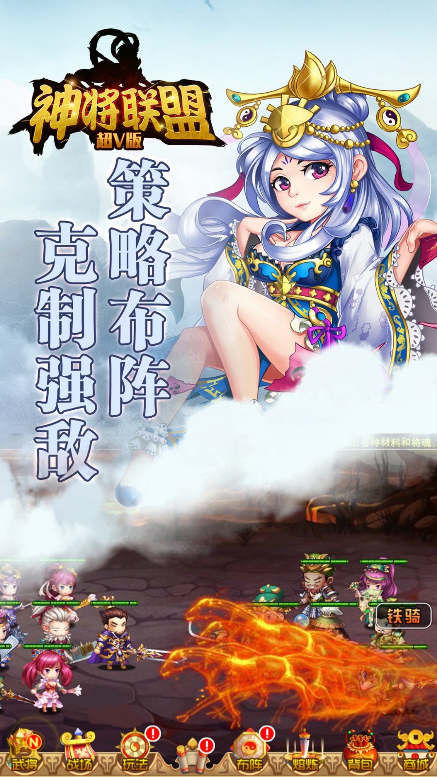 《神将联盟超V版》是一款挂机三国策略手游。由玩家扮演救世者,踏上毁灭魔神之路。