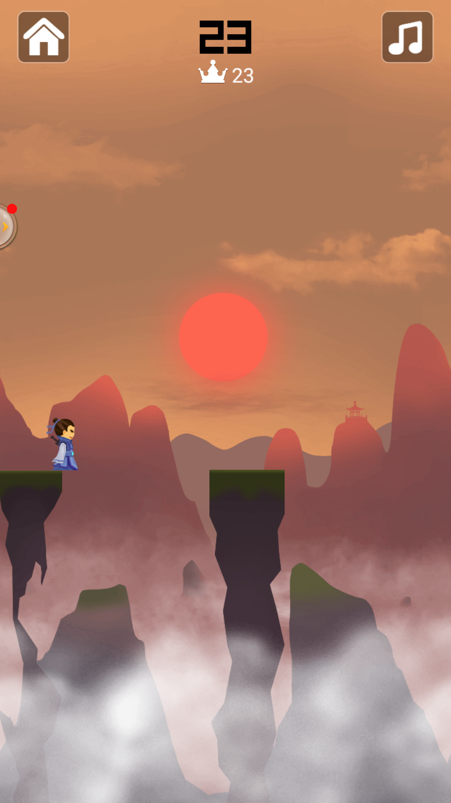 自由畅快的跳跃,试试你能飞跳多远吧! 简单的玩法,不简单的体验,你只需要点击屏幕,大侠就会跳起,跳跃的距离是由你点击屏幕时停留时间决定的哦,喜欢的小伙伴赶快来下载体验吧!