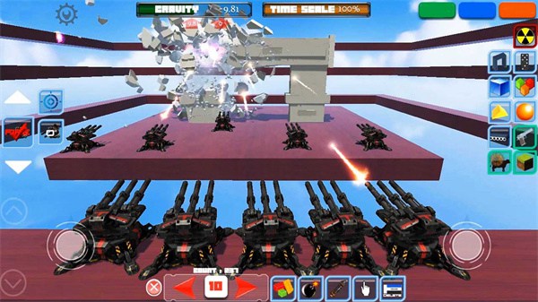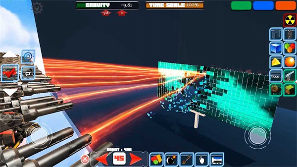 1、不仅有立方体还有各种奇奇怪怪的道具,在你建造建筑后可以去选择武器进行华丽的破坏的;