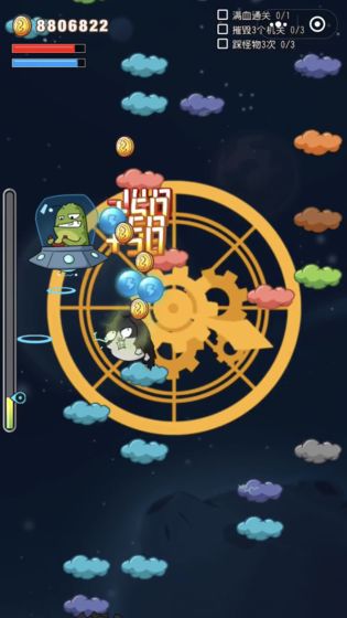 b、高度自由的控制并尽心点击,并消灭关卡中出现的障碍物;
