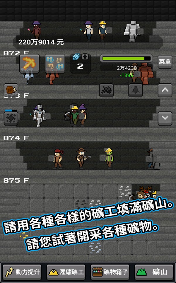4、可以使用各种不同的矿工开采,并尝试获得动力提升。