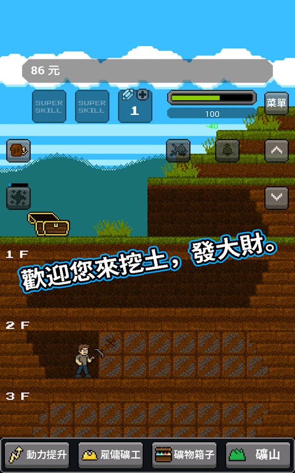 1、游戏采用了像素风格画面,趣味的休闲挖矿类模式;