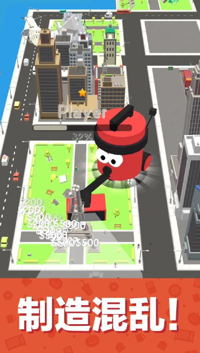 - 3 按钮升级系统,帮助你清理一切障碍,并扩大自己的体型;