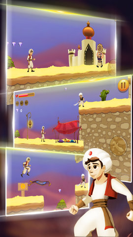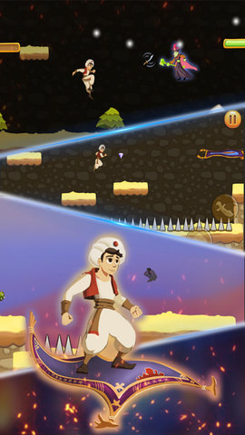 一款冒险闯关类型的游戏。游戏中有一名邪恶的巫婆抓走了公主,玩家将踏上拯救公主的冒险之旅。拯救公主的路途中会遇到很多危险,玩家需要操控阿拉达机智的化解这些危险。