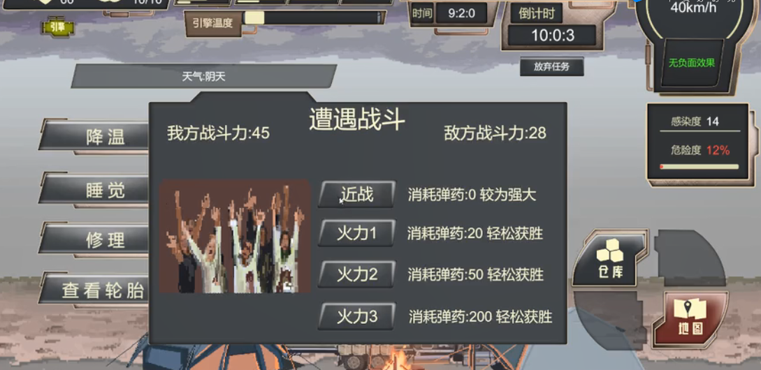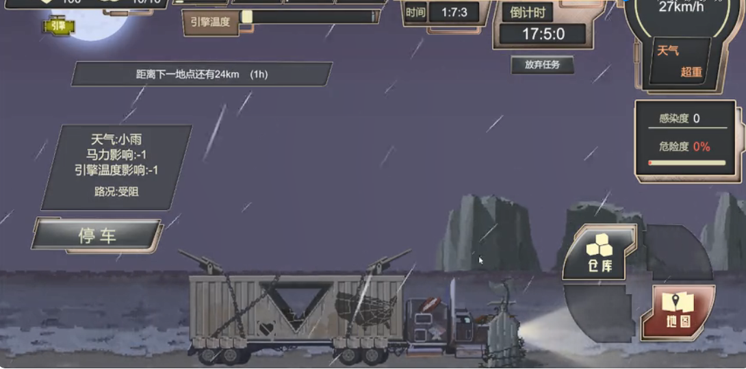 c、处理各种突发的事件,升级自己的车辆扩大队伍的生长。