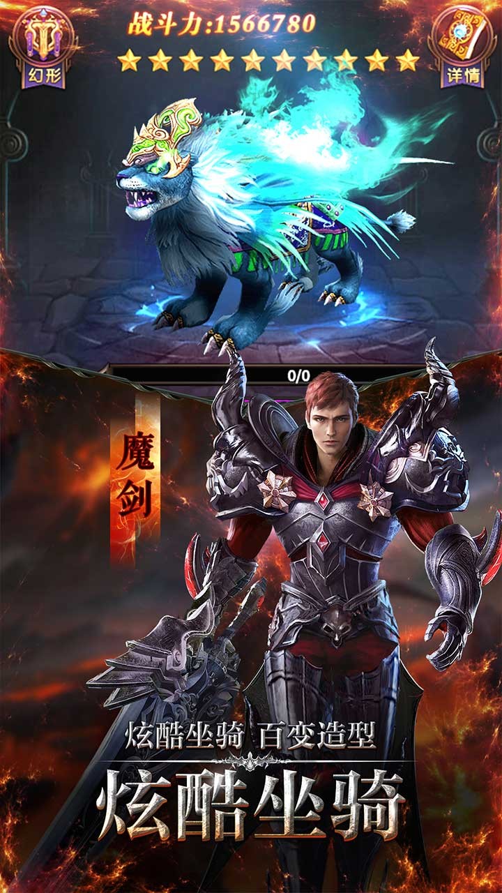 4、霸气炫酷的坐骑外观,各式各样的神兵利器助你提升超额战斗力。